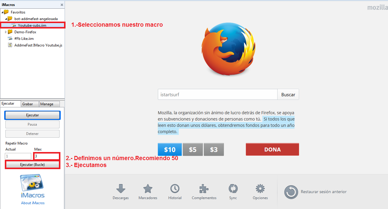 Para empezar vas a necesitar una extensión para el navegador llamada imacros que hay para Firefox o para Chrome y un macro adaptado a tus necesidades. Por internet puedes encontrar varios macros para addmefast aunque yo te recomiendo usar el mismo imacros que uso yo para ganar puntos mediante suscripciones en Youtube que funciona a la perfección y te permitirá conseguir por día muy buenas cifras. Si quieres este imacros puedes comprarlo en este enlace por 0.85€ o conseguirlo gratis con una acción social.